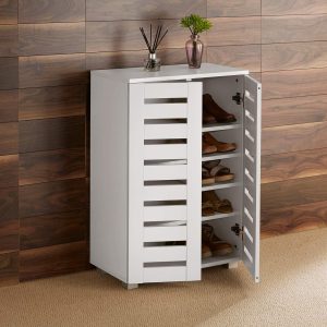 Armoire à chaussures à deux portes en blanc idéale pour ranger les chaussures