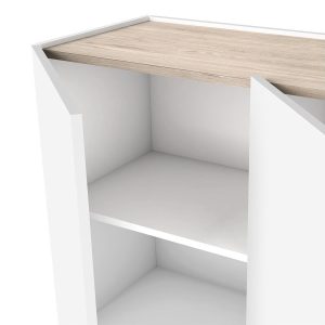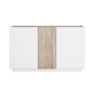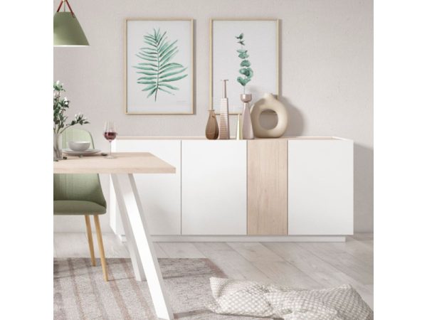 Buffet Bas 3 Portes Coloris Blanc et Effet Bois Clair de la gamme Paneia Light.