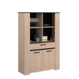 * Description du produit: HELMA BAHUT HAUT, 4 niches en partie haute, 1 tiroir et 2 portes en partie basse avec 1 tablette, en panneau de particules…