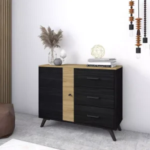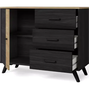 Buffet 1 porte 3 tiroirs effet bois noir et bois naturel L 180 X40X H81