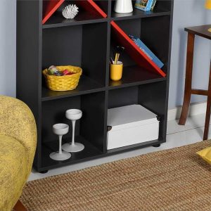 • Une cabinet cube moderne avec une coquille décorative de couleur rouge, avec son design élégant et sa forme ergonomique s’adapte parfaitement à la salle de séjour, la chambre à coucher, la salle de bain ou près de la station de jeu. Il a 10 coquilles identiques, une forme en X décorative et deux cross coquilles décoratives qui peuvent être déplacées autour de la cabinet si vous le souhaitez. Il est fabriqué en mélamine de surface de haute qualité.