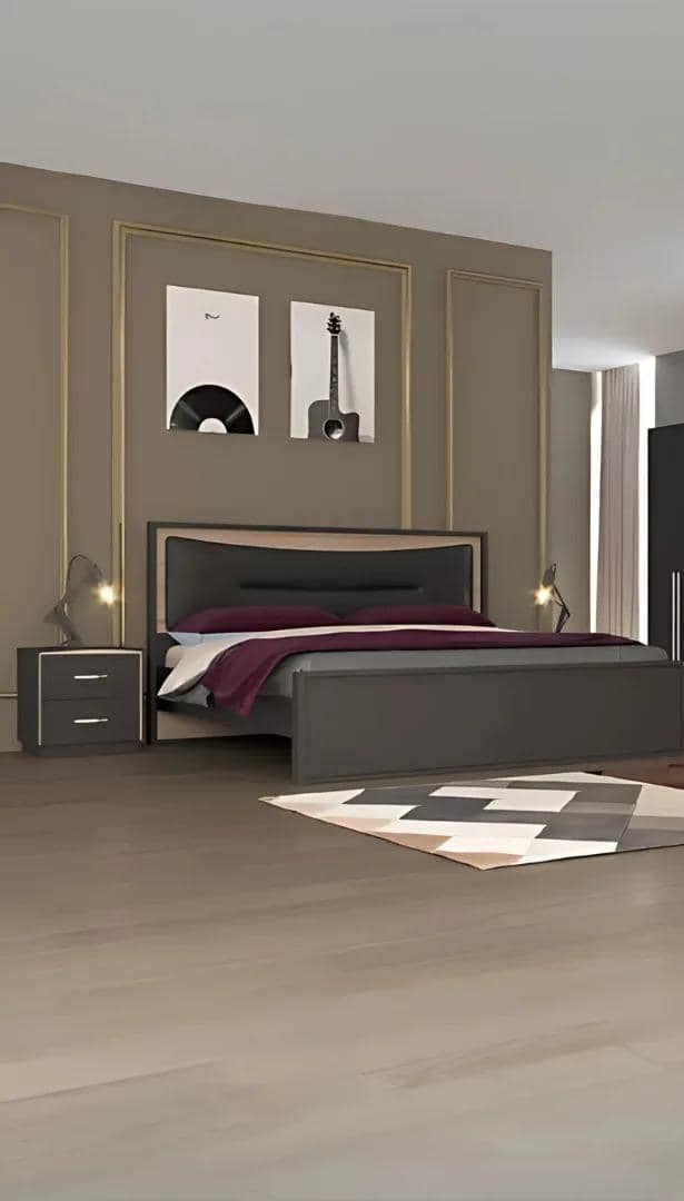 LIT ETHAN + 2 CHEVETS 180X200CM COULEUR Walnut+Dark Grey ( DISPONIBLE LE 15 OCTOBRE)