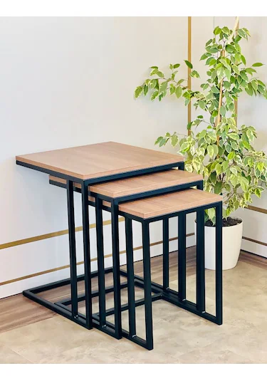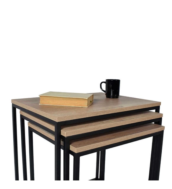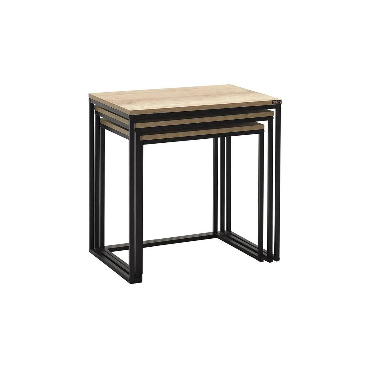 Nom du produit Lot de 3 tables basses gigognes DETROIT 55/57/40 design industriel – IDMARKET – Aspect bois – Métal