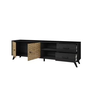 Meuble tv 2 portes 2 niches 2 tiroirs noir-bois – l 180.5 x l 40 x h 53 cm –