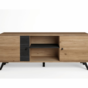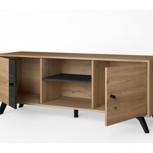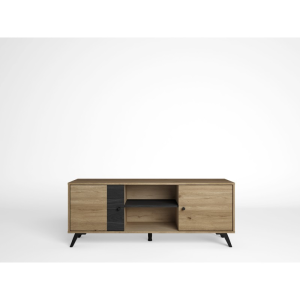 Meuble tv 136cm 2 portes effet chêne naturel et noir de la gamme pinia. une gamme imitation bois élégante et tendance, qui modernisera votre intérieur. Avec ce modèle compact, vous disposez de 2 espaces de rangement fermés pour ranger vos effets, et de 2 niches ouvertes pour vos décodeurs, lecteurs, consoles, etc… structure en mélaminé, effet chêne naturel et chêne noir. dimensions : 136,3 x 40 x h53,1cm.