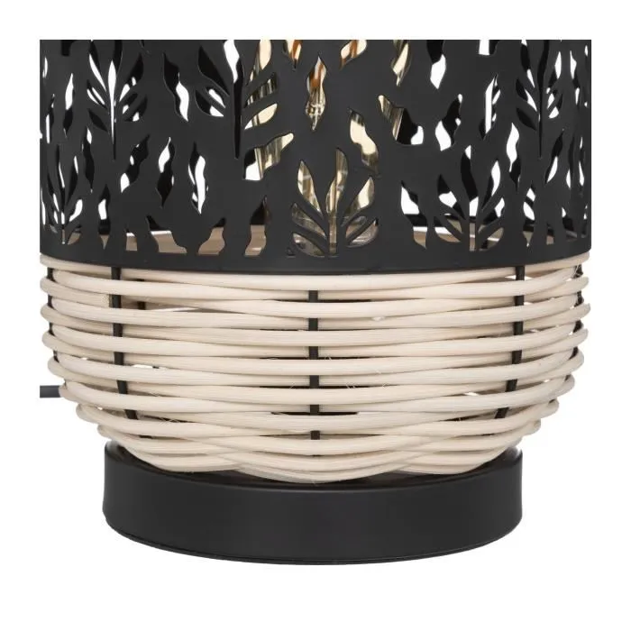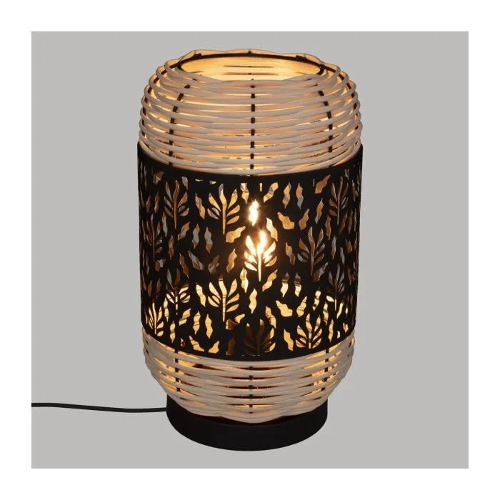 Atmosphera – Lampe à poser en Rotin et métal Noir H 30 cm (-) Dimensions : D. 18 x H. 30 cm – Base : D. 14 x H. 2,5 cm – Câble : L. 150 cm – Matière de l’abat-jour : Fer et Rotin – Matière de la base : Fer – Alimentation : Secteur – Ampoule incluse : Non – Douille : E27 – Puissance max : 40W – Poids : 0,600 kg –