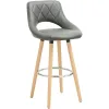 Table haute mange-debout de style scandinave avec pieds en bois naturel et métal laqué noir.